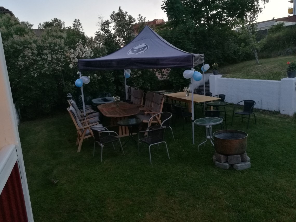 Ikväll har vi fyllt kylen med mat o dryck. Och röjt av i trädgårn. Men helt plötsligt ser jag på Jessie att nåt är fel och vi gråter ihop😢😢😢😢länge. Känslan är fel på nåt sätt. Det är ju kul att släkt och väner kommer o vill fira, det är oxå kul att se och träffa vänner vi inte sett på länge.