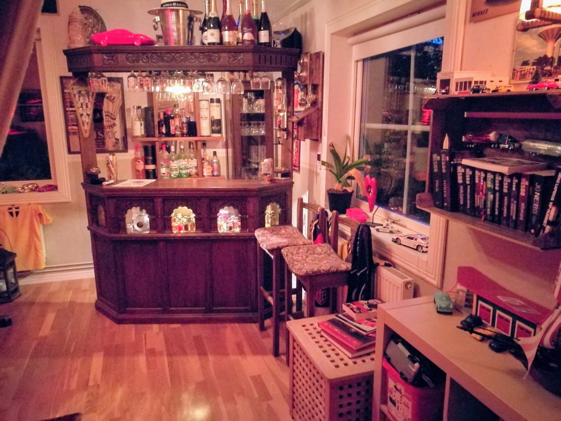 Eller klart blir det nog aldrig för det rummet har en tendens att ändra sig efter behov ?? Ja behov av en bar har man ju inte heller men det är bättre att ha ett rum med en säng, en bar, lego, böcker och en drös med andra saker man inte behöver än ett tomt rum.