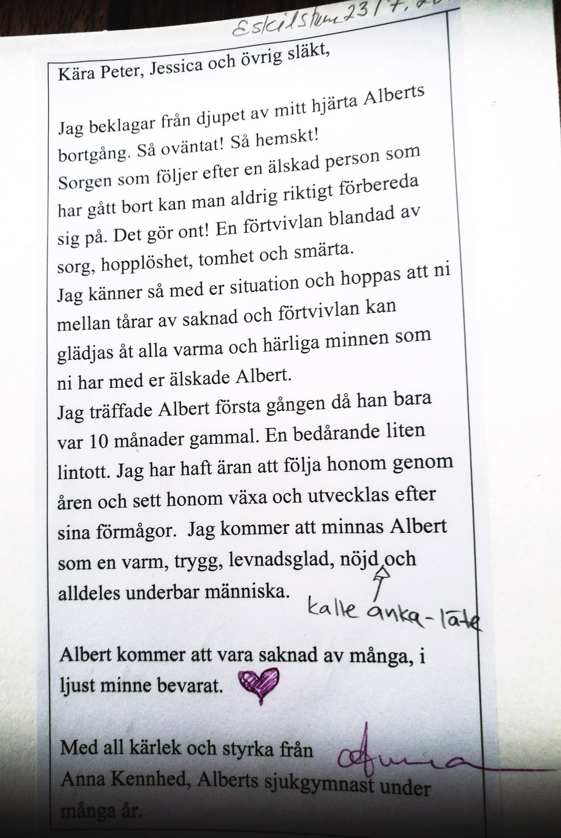 För tredje gången skall vi fira Jul utan mina änglar. Bredvid kortet på Albert står sen 2,5 år ett kort jag o Jessica fick när Albert gått bort. Jag tycker så mycket om det❤️ Texten beskriver Abbe på ett fint sätt men också hur mycket kärlek och engagemang alla som jobbade runt honom gav.