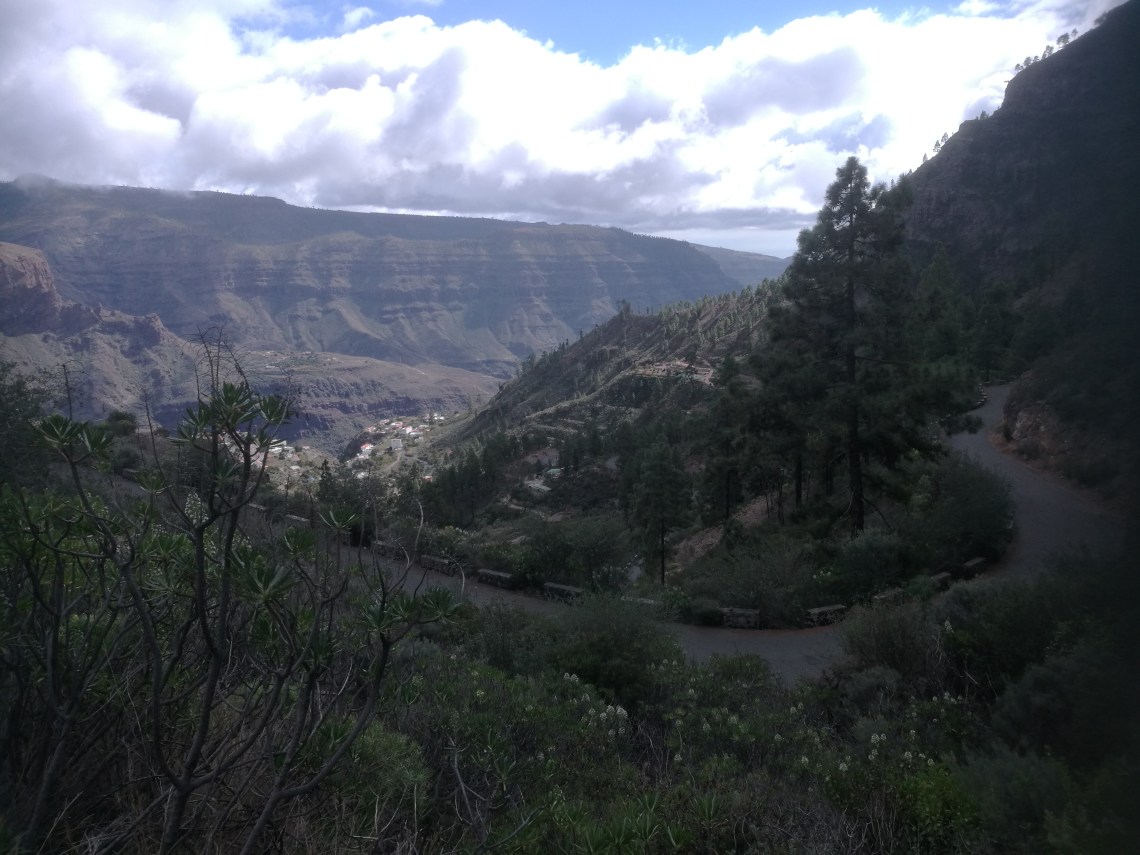 Så vidare mot vårt gamla hotel där min fina vän o kollega är med sin familj nu. Tänkte innan ev stanna o fika men humöret nu hade inte lagt sig än. Efter ett litet besök i Puerto Rico var tanken att åka vidare till byn Mogan och sen rakt upp över ön via bergen på en lite större väg. Strax efter PR var vägen avstängd! Va f…n, ok vi vänder o åker tillbaka till A o tar en lite mindre väg norrut. Den är jättefin! Liten väg, små byar, bergen växer och många cyklar.