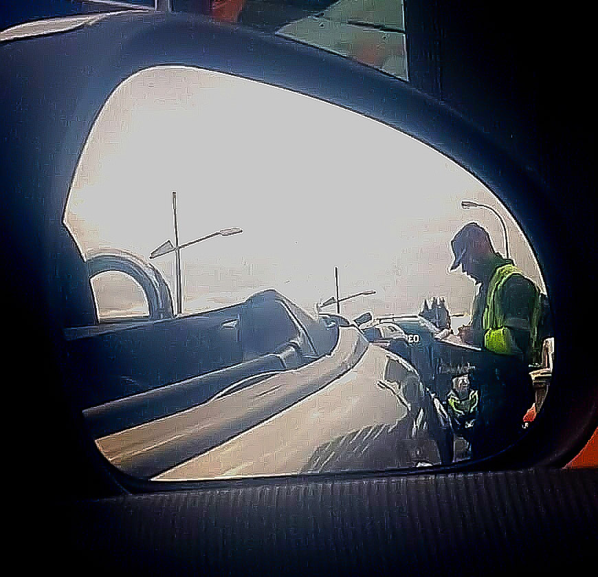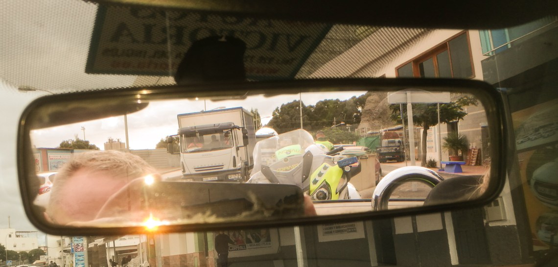 Vi hann inte inte ens fram till A (nästa by) innan vi hade två MC poliser med blåljus bakom. Jag hade passerat ett gäng cyklister och för att inte ligga så nära så hade jag tydligen kommit över vita linjen (utan möte) ? Jaja.. Ok,gilla läget bara. Efter 20 minuter kommer han tillbaka och säger att jag får 50% Rabatt om jag betalar nu. Jag börjar skratta, driver han med mig? Men han var allvarlig. 😂💶💶💶
