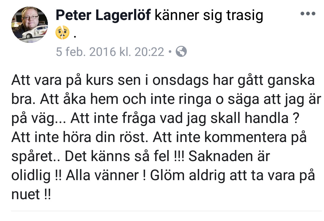 Nu är det 2019 och det har gått ett år till. Jag har sen i Augusti haft Dina som inneboende och det betyder att det låter i huset, nån som säger godmorgon, hur var din dag osv. Vi kan käka eller ta en fika o pratar om livet. Så samtidigt som det är trevligt så påminner det om det liv jag saknar.