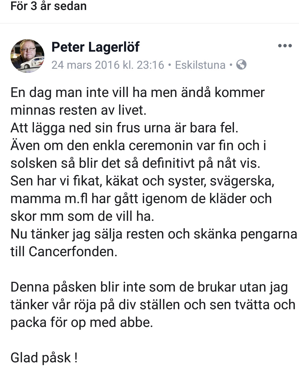 Jag tar till mitt perspektiv. För fyra Är sen fick Milla beskedet att hon hade 2 till max 10 Är kvar att leva och vÄr vÀrld rasade. För tre Är sen hade vi urnsÀttning (dvs ett 3:e farvÀl av 6 2016).