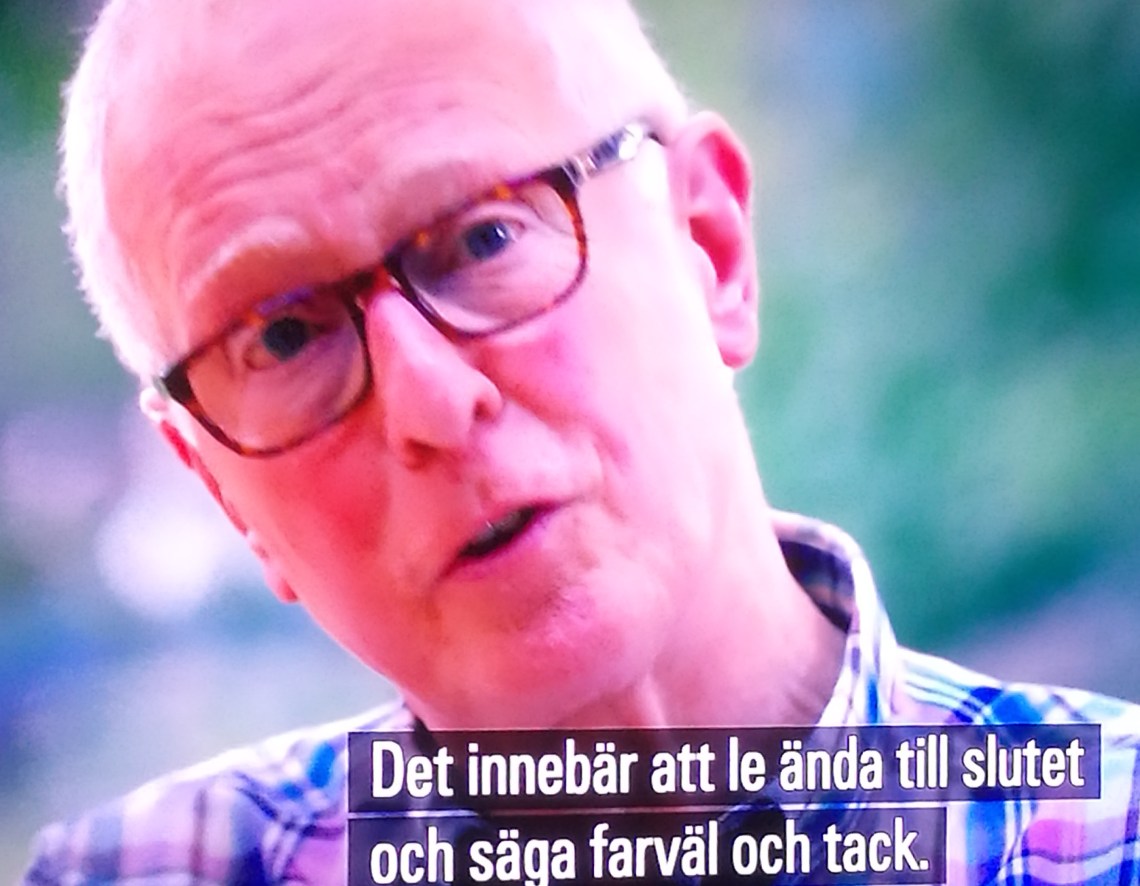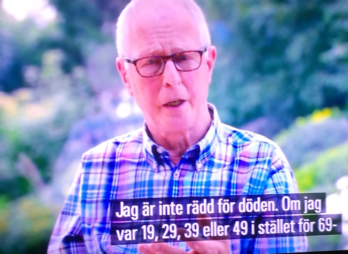 En kvĂ€ll sĂ„g jag en mycket bra dokumentĂ€r som skulle handla om hur mĂ€nniskor som vet att de har kort tid kvar att leva hanterar döden. Men till filmarens förvĂ„ning sĂ„ tĂ€nkte de mer pĂ„ livet.đDet var stundtals jĂ€ttejobbigt dĂ„ jag kĂ€nde igen sĂ„ mycket i min Ă€ngel, men ocksĂ„ i mig. Denna man berĂ€ttade att han förlorade sin första fru nĂ€r han var 49 och det hade lĂ€rt honom att se annorlunda pĂ„ sin egen död.