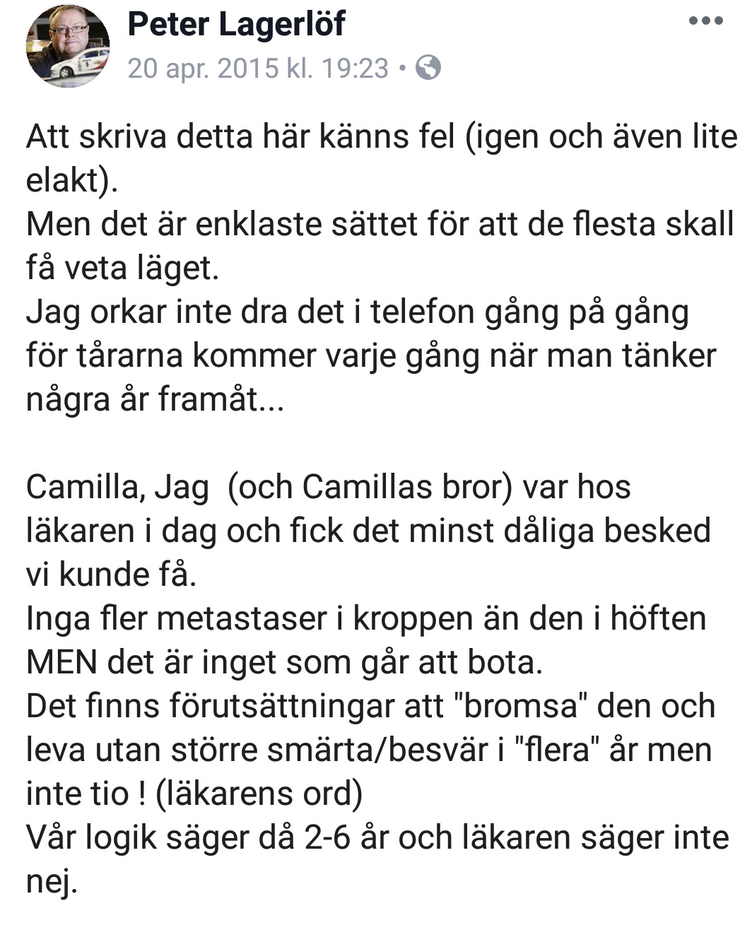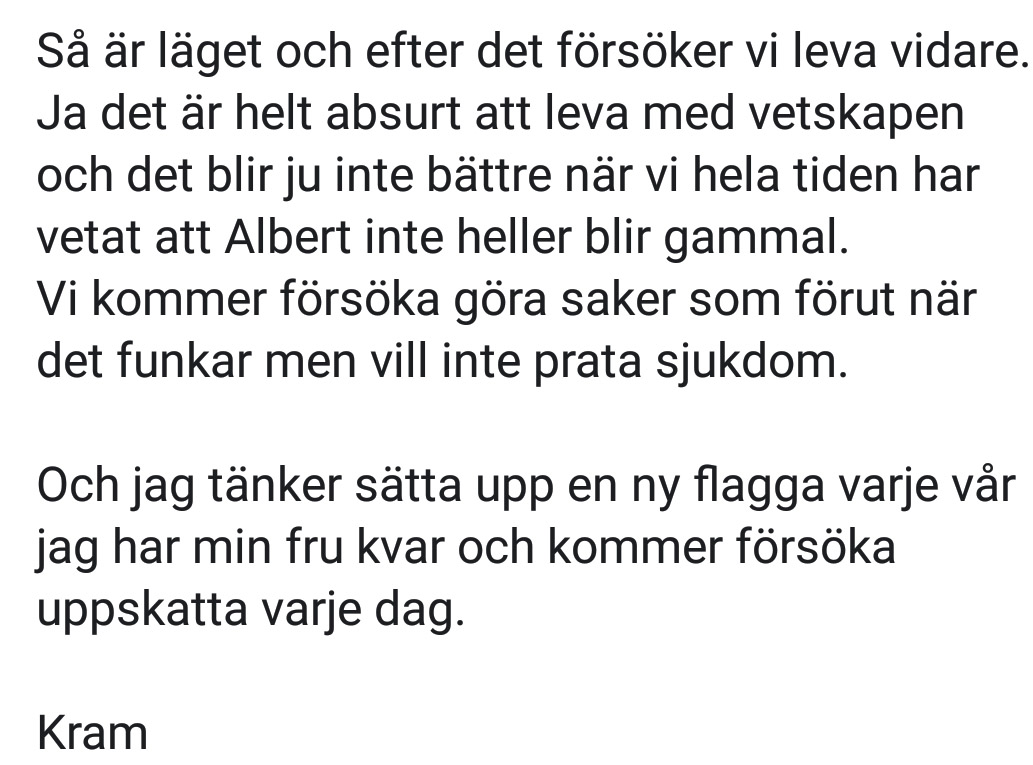För fyra år sen fick vi beskedet som då slog oss i backen men efter nån vecka blev Nu ska vi leva så länge det går.