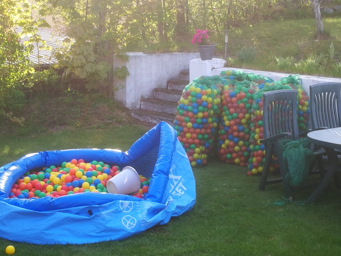 Sen har halva kvällen ägnats åt att tömma poolen på bollar.