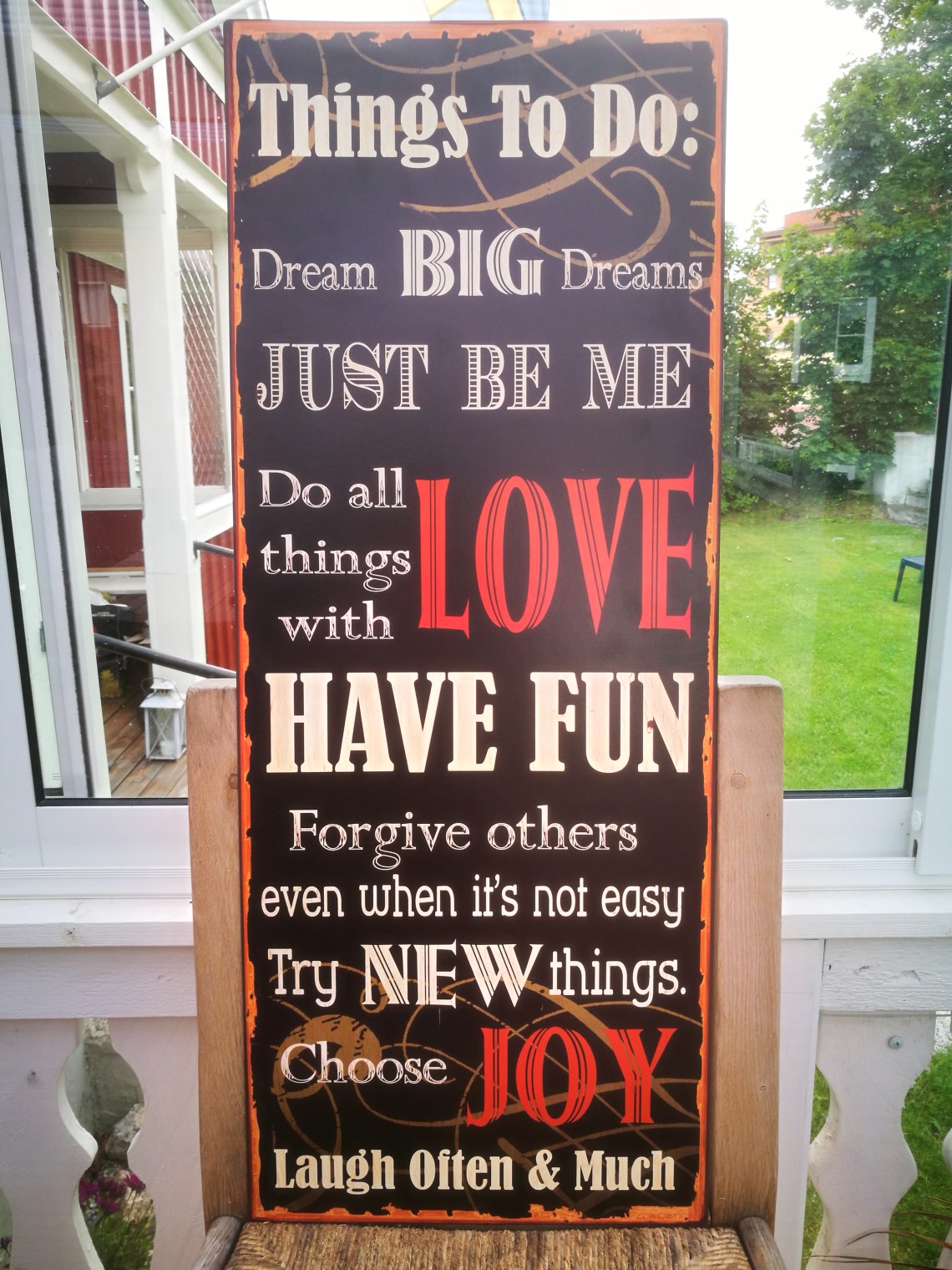 För ett tag sen såg jag denna skylt o köpte den. Idag hämtade jag den. Tanken är att den skall påminna mig om att leva efter den..