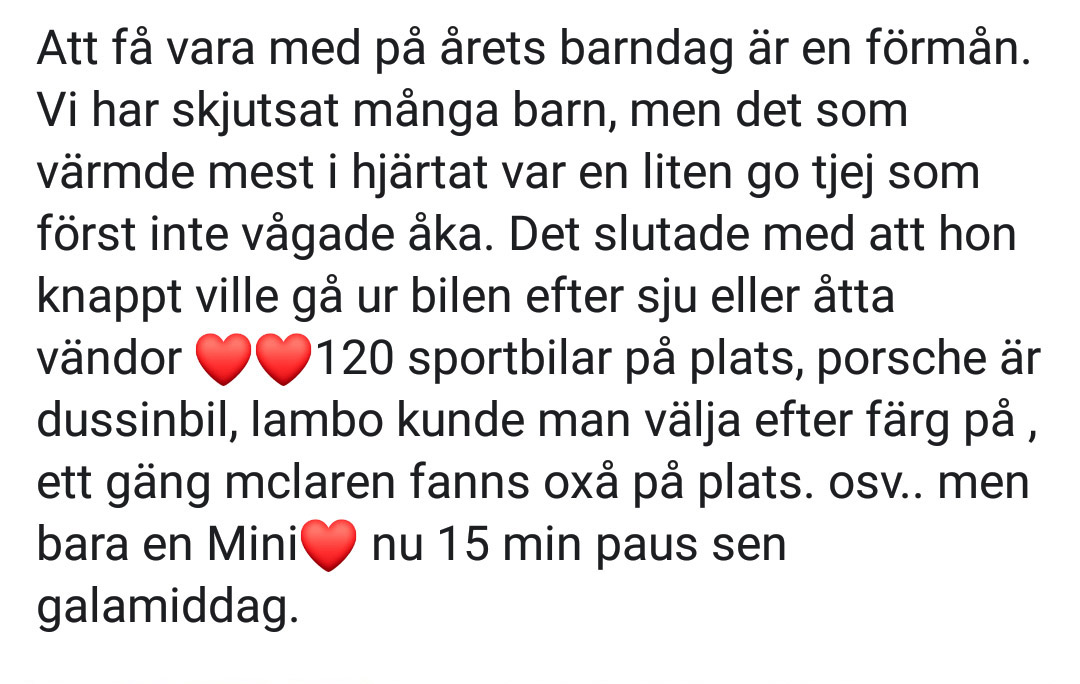 Idag har jag fortsatt och det är nästan klart. På Facebook kom det upp minnen från barndagen för ett år sen. Ett fantastiskt event då vi var 120 supersportbilar som skjutsar sjuka barn.