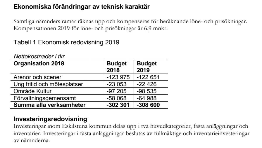 Likaså finns en budget för kultur o fritid och de flesta arenor/lokaler subventioneras av kommunen.