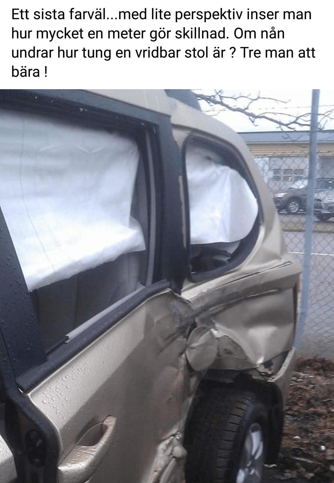 12:e November 2013 skulle Milla o jag på 40 års kalas men pga oaktsamhet av mig så slutade det framför en buss men med ”full gas reflexer” och lite änglavakt gick det bra.