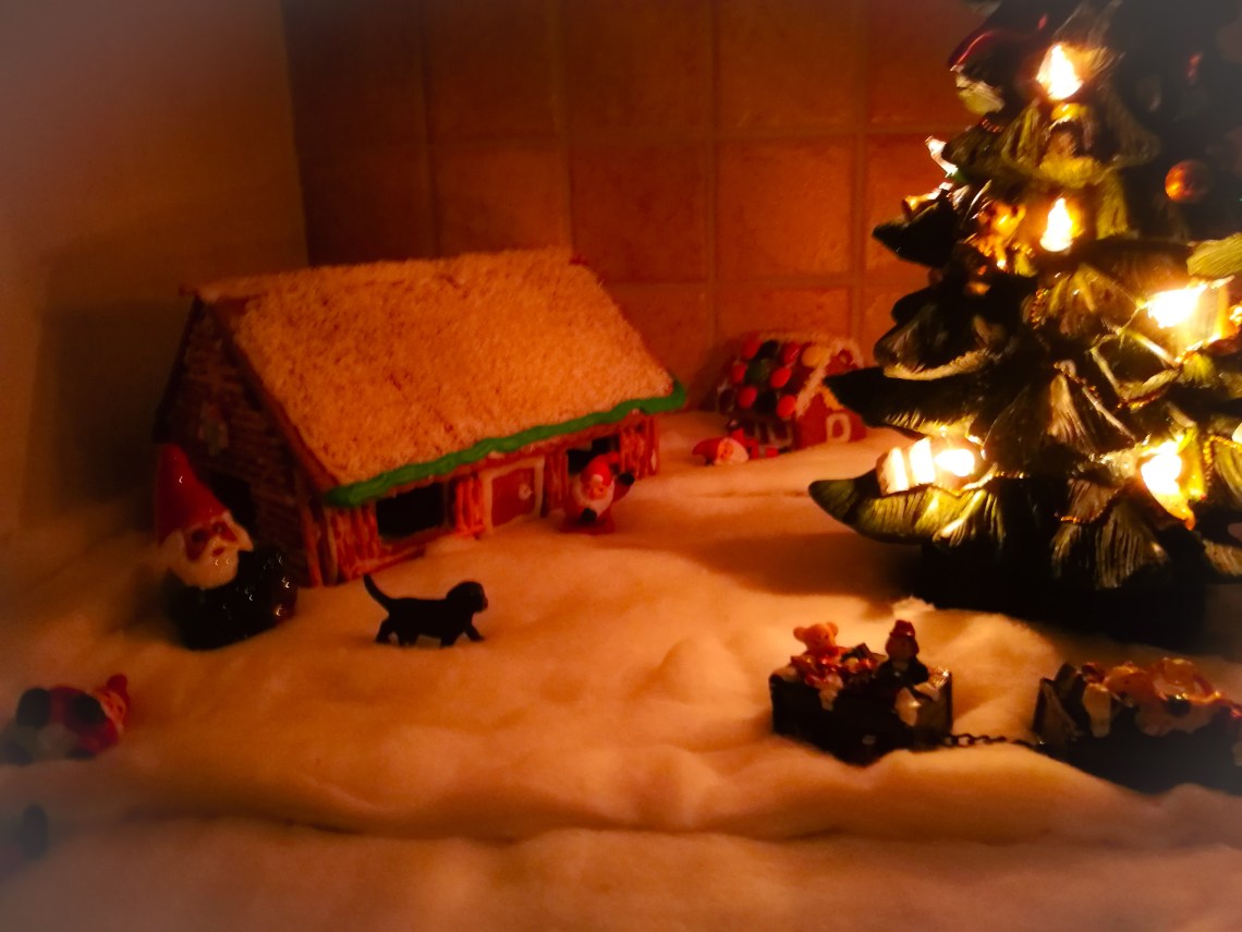 De sista tre jularna har jag inte haft nån gran och minimalt med tomtar. Milla älskade Rolf Berg tomtar och jag har inte fixat att ha dem framme..Tills idag. Jag har börjat på ett landskap i köket med pepparkakshus, gran o tomtar. Det skall fyllas på med fler hus, hundkoja såklart 😁 och fler kul saker 🎅.