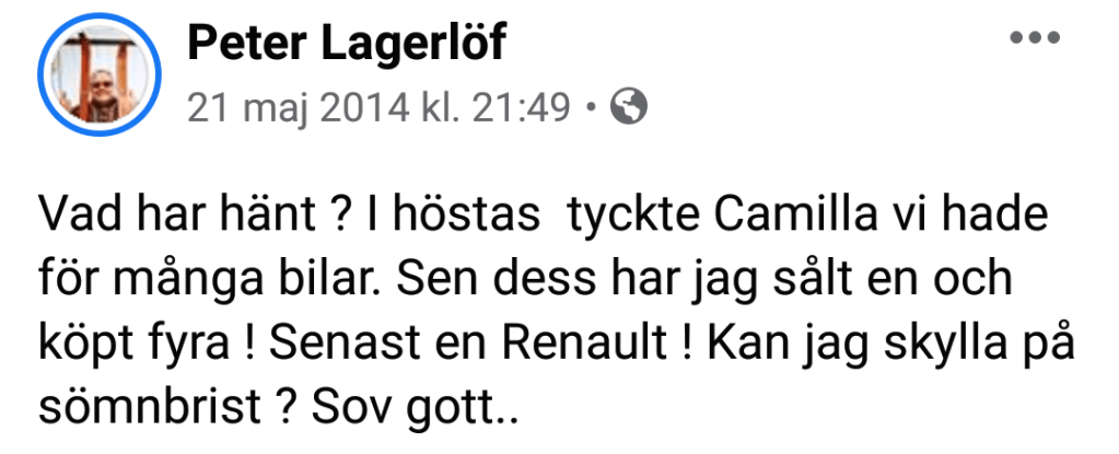 2017… Då hade jag sålt en konstig kaross till en snubbe i Grekland och för pengarna köpte jag trampbilar och skänkte till GTR för barn ska också ha kul när de vuxna leker.