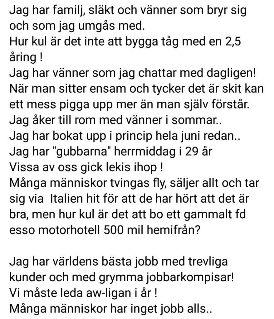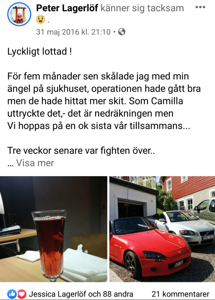 Jag har ÀndÄ varit lyckligt lottad att ha familj, vÀnner o kurator som stöttar.