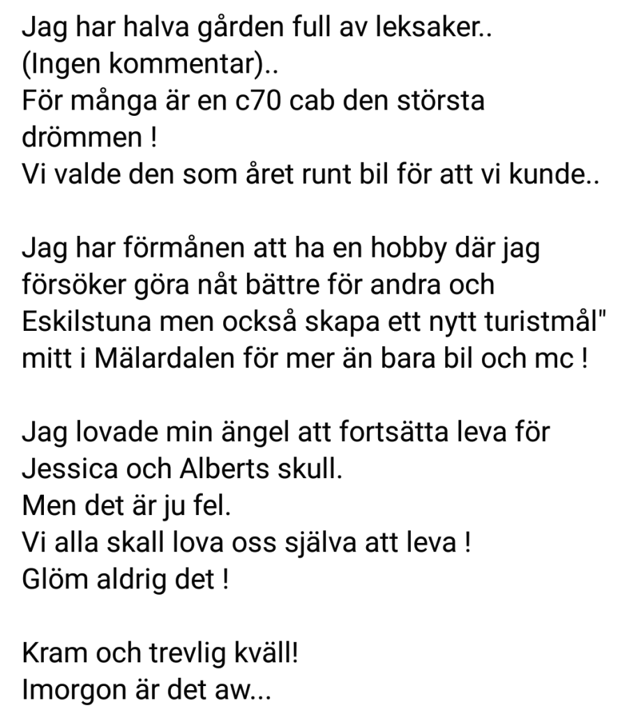 NĂ€r jag Ă„kte hem sĂ„ passerar jag Strömsholm o minnen kommer upp pĂ„ en gĂ„ng pĂ„ slutet dĂ„ Milla, jag o Jessica var dĂ€r o fikade. Det kommer fortfarande tĂ„rar o jag blir nog mest arg för att Jessica inte har en mamma pĂ„ mors dag. Det kommer för mig alltid skĂ€ra i hjĂ€rtat.đ„