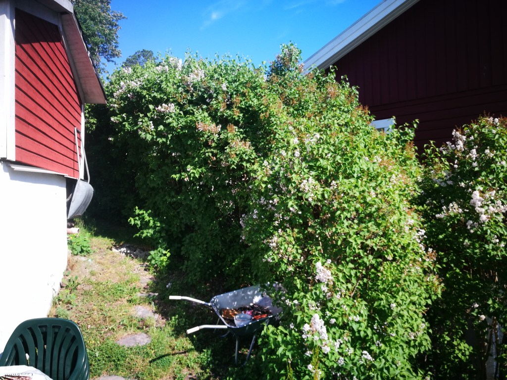 Jag började också bygga loungesoffa till altanen, gå igenom sommar garderoben och måndag och tisdag klipptes en syrenhäck som inte är klippt på 15 år!