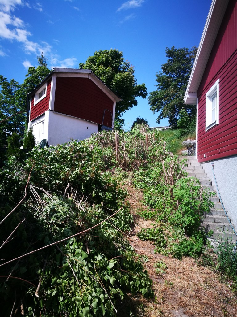 Det tog nästan två dagar och jag var bra slut när jag körde sista lasset till soptippen på tisdag em. Men grannsämjan är kvar.