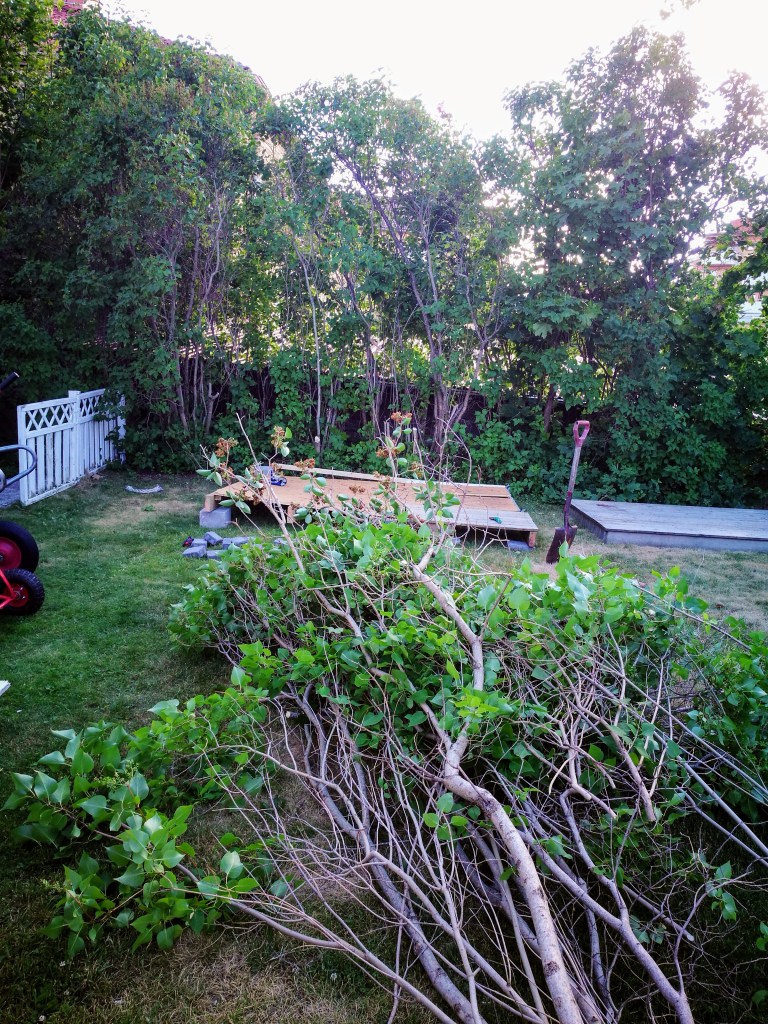 Ikväll så röjdes lite häck och gjorde plats för grunden till nästa veckas projekt.