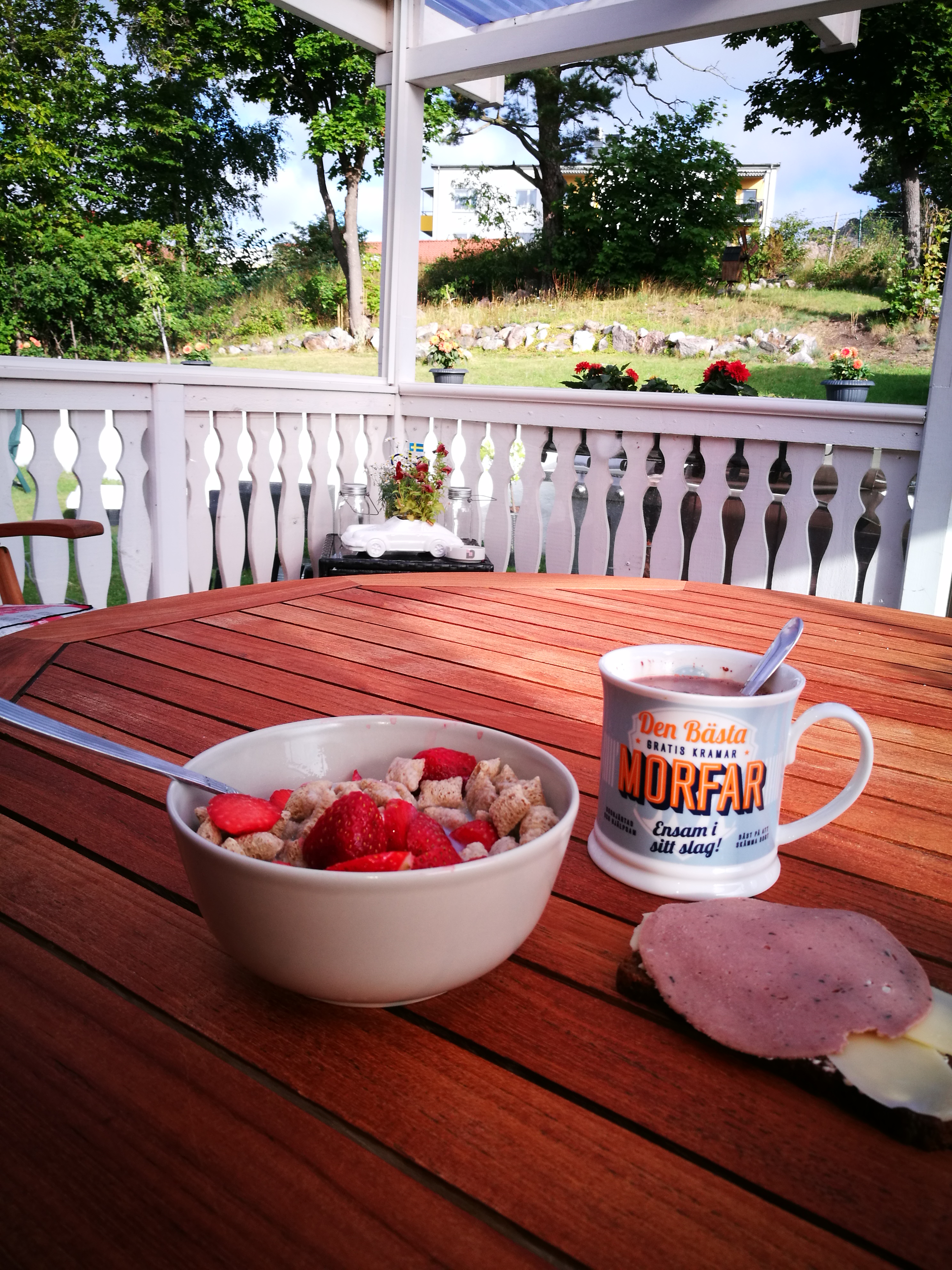 Idag hade jag semester från arbetshemestern och började med frukost i solen.