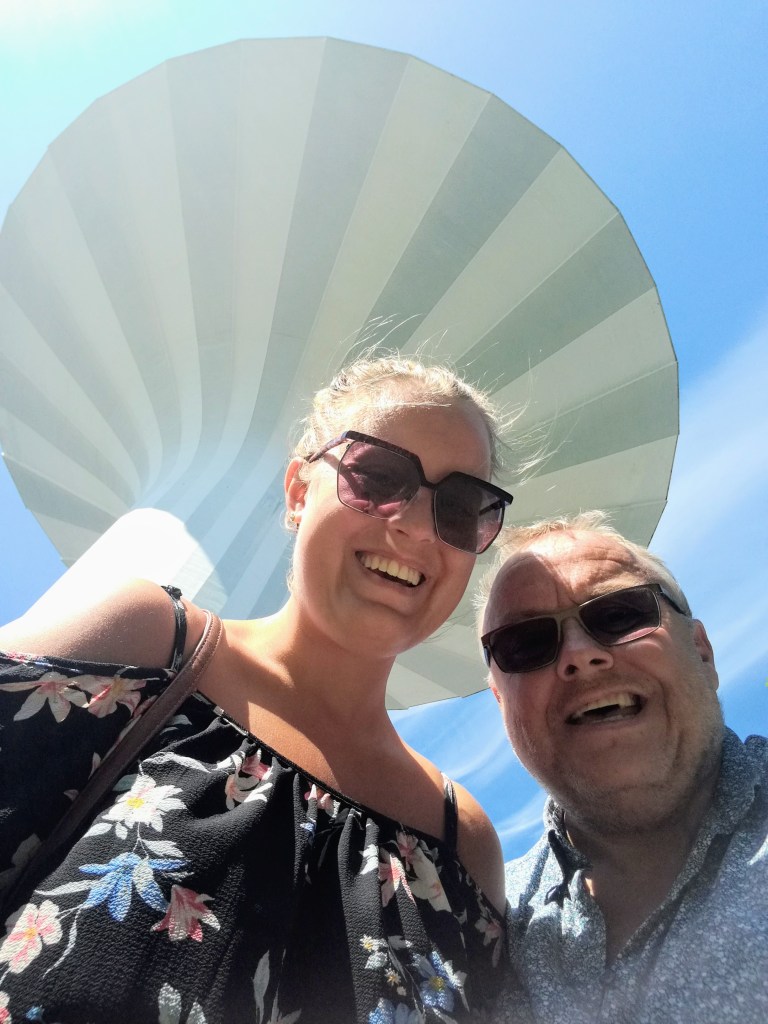 Hotel frukost ute solen med slottet, ån och Frimis som utsikt. Lite lugnt förmiddagshäng på rummet sen en sväng upp på svampen för att kolla hjälmaren (de kanske borde byta till Hjalmaren?) , hela stan och upptäcka att skybaren tyvärr inte var öppen en tisdagkväll.