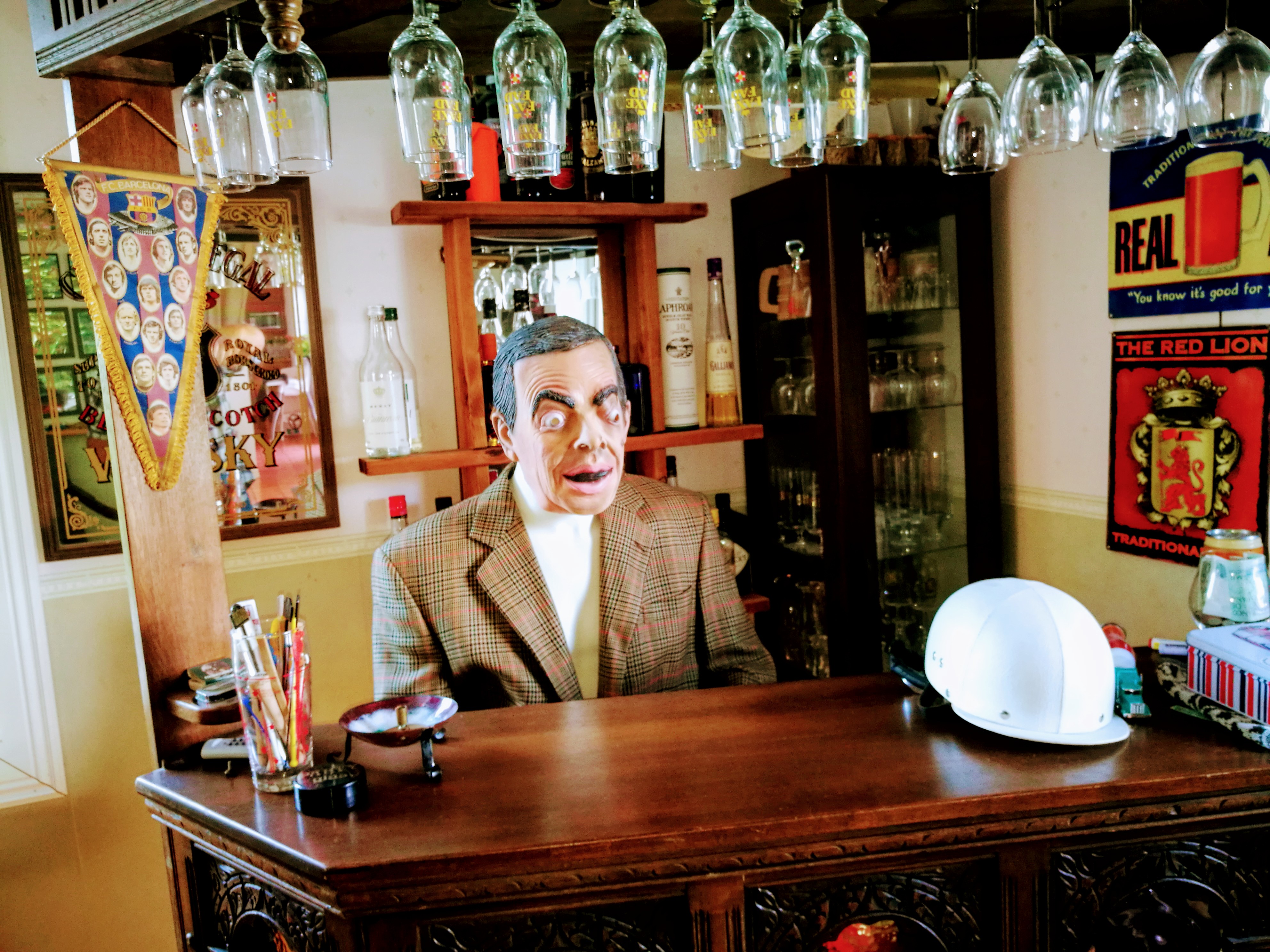 Han stĂ„r i hallen och skĂ€ller in i baren dĂ€r Mr Bean stĂ„rđđđđ.