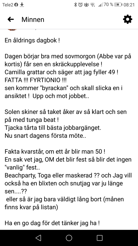 Vad hĂ€nde dĂ€r? Jag mĂ„ste erkĂ€nna att det var nĂ„gra Ă„r sen jag fyllde Ă„r pĂ„ mitt sĂ€tt. Orsaken vet Ni om och jag ska nu kort berĂ€tta lite historia och hur det var tĂ€nkt..đđ Och vad som kan hĂ€nda… Jag om nĂ„n borde ju ha lĂ€rt mig att fira varje Ă„r man fĂ„r vara medđâ€ïž.