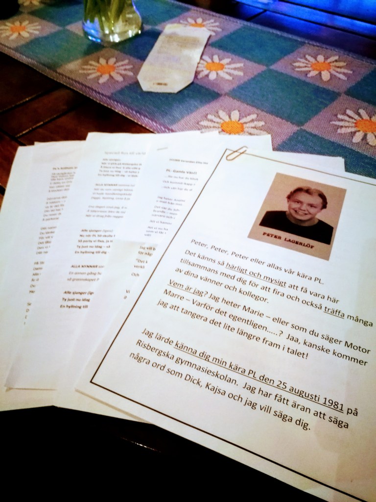 I rensningen så hittade jag ett kuvert jag inte öppnat sen 5 år. Det är talen sen min 50 års fest. Jag har inte orkat för minnet är för starkt.