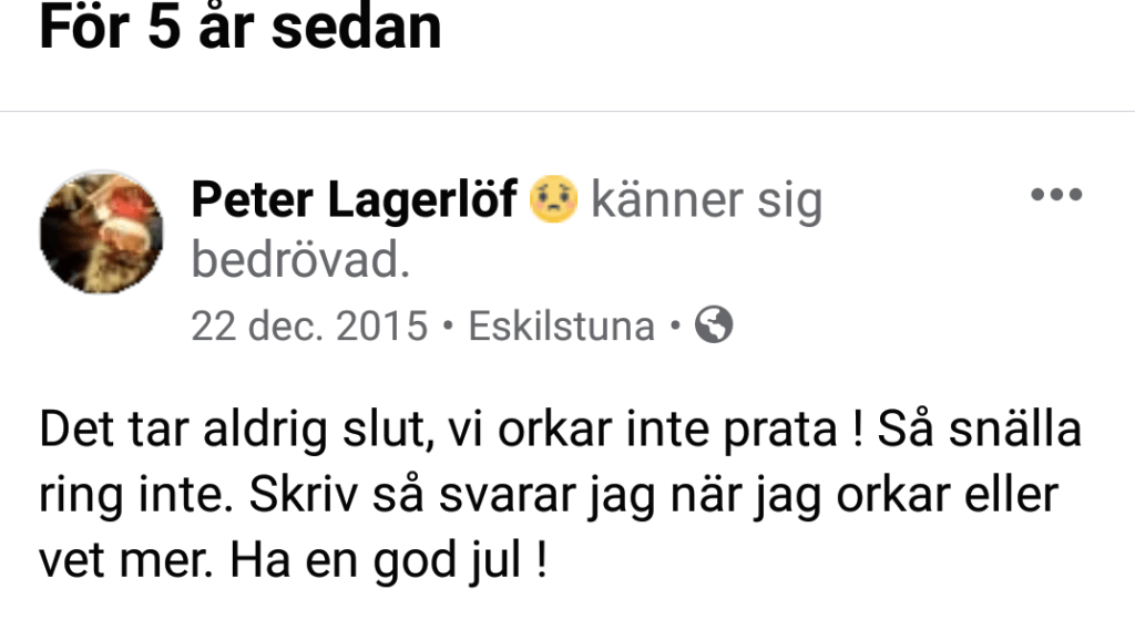 Det blev dock inget julfirande, totalkrasch på julafton…