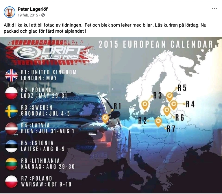 För sex Är sen gjorde jag en intervju för tidningen i mitt garage om den positiva nyheten att Drift All stars skulle avgöras i Eskilstuna. Det Àr lite spÀnnande för idag hade jag ett samtal om att Äteruppliva en annan gammal idé /event inom motorsport. Men det Àr vÀldigt skumt att inte veta om det skall göras inför 0 eller 5000 personer ? Men det Àr livet.. Vi vet inte vad som hÀnder.