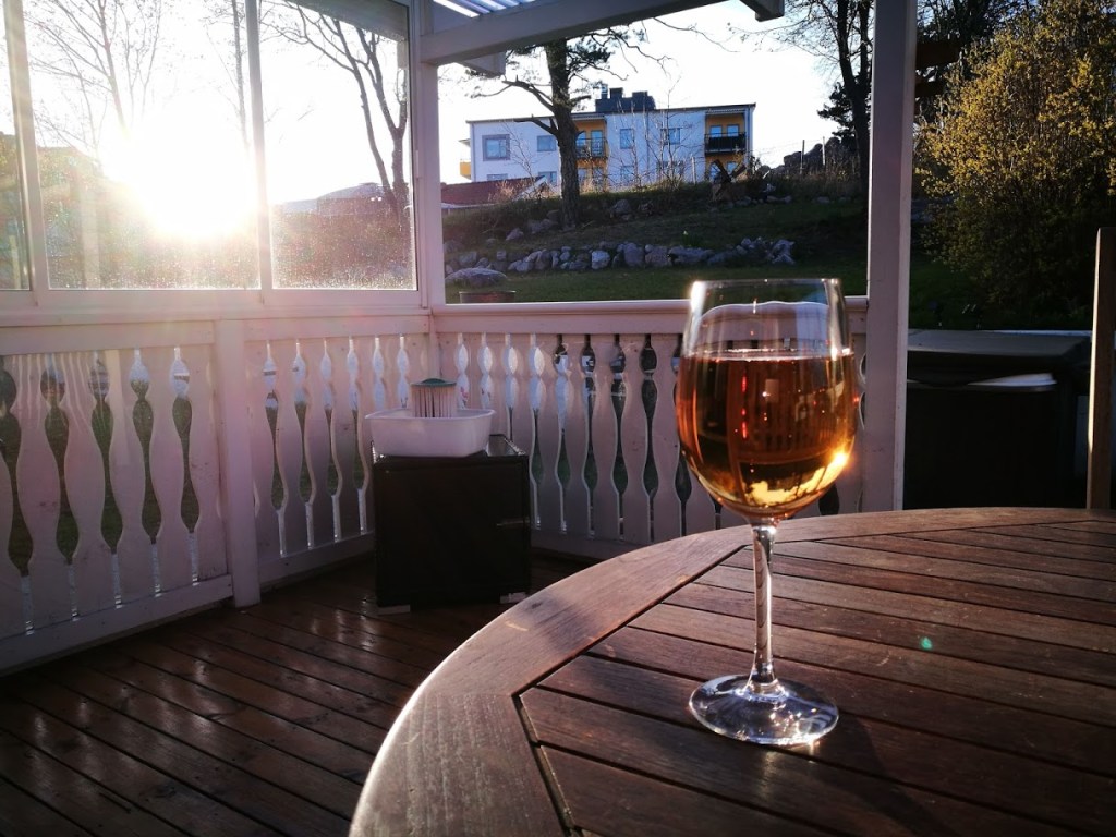 Ikväll tog första glaset på baksidan då kvällsolen äntligen är på tillbaka. Och sen hoppas jag få träffa fler älskade vänner snart igen.