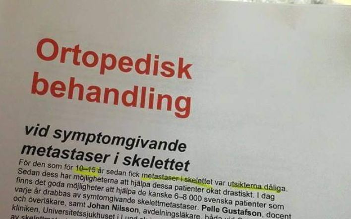 Till slut kommer hennes läkare, en ung man, 30-35år och ganska försynt (mesig) och hälsar oss välkomna. Han ber oss komma in ett rum och sätta oss. Läkaren börjar prata och berättar att de hittat en metastas i skelettet. Jag och Carina hade såklart googlat igår så Vi visste att oddsen inte var bra. Läkaren säger att det går inte att bota men att försöka skjuta upp förloppet, snittet ligger på två till sex års överlevnad men vissa kan klara det upp till 10 år. Och forskningen går ju fort fram så ge inte upp. Sen undersöker han Carina, det känns lite skumt att se läkaren känna på min frus enda bröst för att hitta fler tumörer? Han har ju nyss gett oss det värsta besked vi kan få.