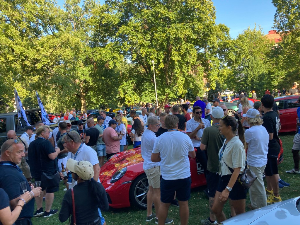 Under eftermiddagen blev det väldigt många åk så jag var trött, svettig men samtidigt lycklig när jag som sista bil lämnade GTR, jag tänkte att jag kan då visa om någon är osäker på den nya parken på stan vi skulle ställa ut i. Dröm om min förvåning när jag är först till Rinmansparken😂😂 Ingen av 100 personer mindes tydligen vad Peder sa 7 timmar tidigare. Men till slut kom alla och allmänheten fick njuta av bilar o vi drack bubbel.