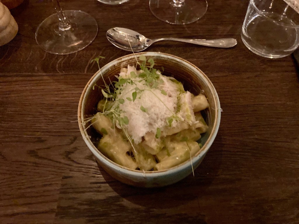 En trevlig âherr oberâ berĂ€ttar att de jobbar med mellanrĂ€tter sĂ„ det Ă€r lite som tapas. Ok spĂ€nnande och vi tar in lite friterad ost, snacks, minilökringar som starter o sen tar jag en kalv med potatiskaka o sen pasta med kyckling. Alla fyra fick supergod mat đđđđ SĂ„ överraskande bra, jag kommer tillbaka och gĂ„r förbi könđ